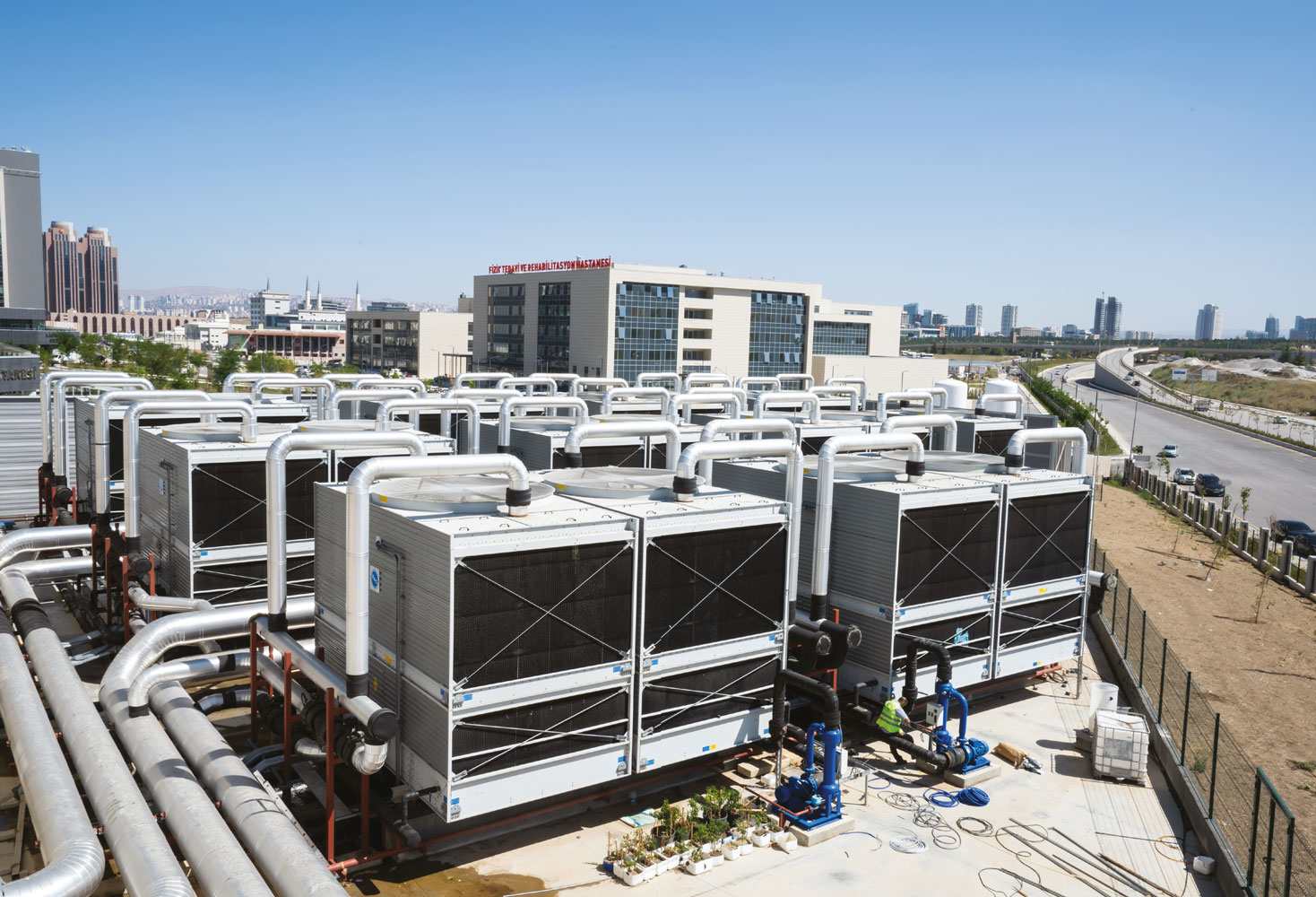 • Within the framework of 114,50 MW cooling and 97,6 MW heating capacity; 15 Chiller, 31 Cooling Tower, 12 Hot Water Boiler, 4 Sterile Steam Boiler, 2 Raw Steam Boiler, 754 Air Handling Units, 212 Precision Controlled Air Conditioners, 13.750 Fan Coils, 370 Humidification Units, 182 Operating Rooms Laminar Flow Units.